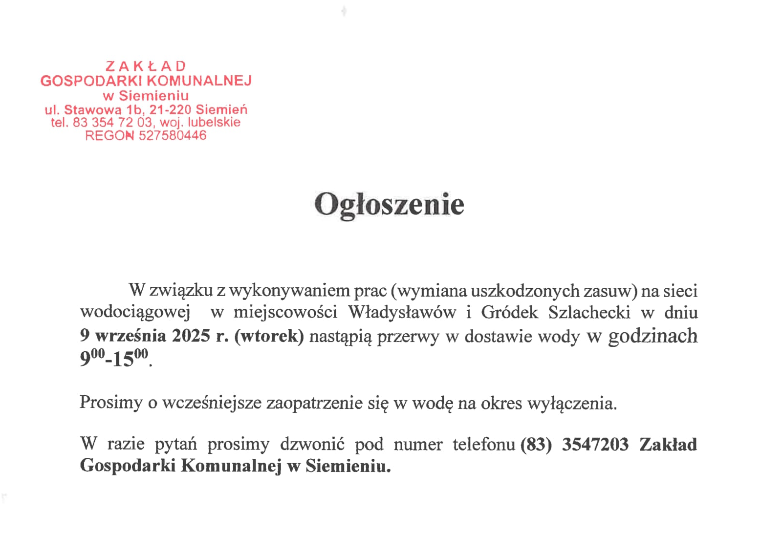 Urząd Gminy Siemień, ul. Stawowa 1B, 21-220 Siemień