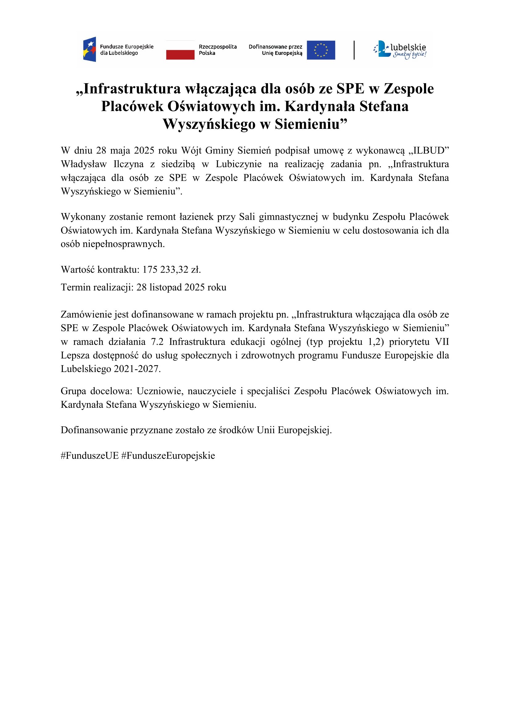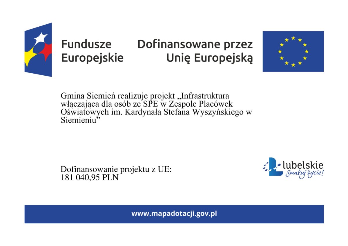 „Infrastruktura włączająca dla osób ze SPE w Zespole Placówek Oświatowych im. Kardynała Stefana Wyszyńskiego w Siemieniu”