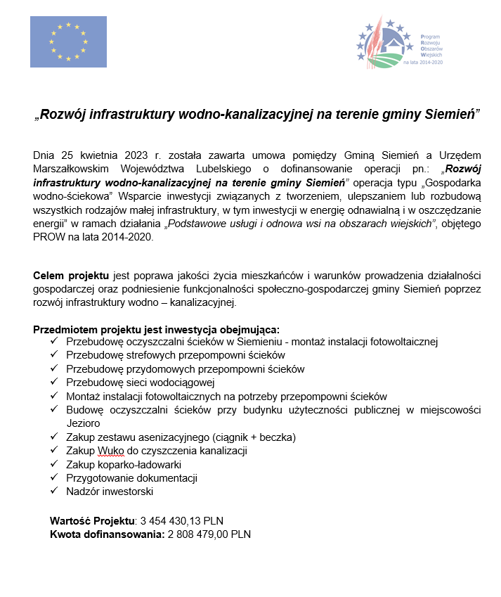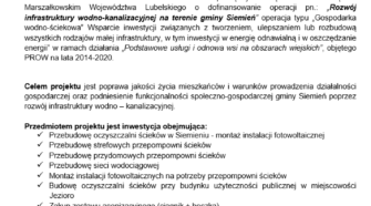 „Rozwój infrastruktury wodno-kanalizacyjnej na terenie gminy Siemień”